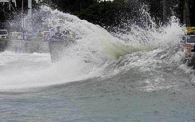 Masih lagi bercerita tentang negeri Pulau Pinang. Belum reda lagi isu Jambatan Kedua Pulau Pinang yang runtuh baru-baru ini, Padang Kota dipercayai dilanda ombak laut setinggi hampir 3.5 meter! Ombak tersebut seolah-olah seperti satu penangan ombak Tsunami. Moga dijauhkan dari segala malapetaka dan bencana. Kami difahamkan, ombak berkenaan menjulang tinggi sehingga menghempas kawasan darat menyebabkan beberapa kenderaan hampir tenggelam. Ia sama seperti kejadian di negeri Jepun suatu ketika dahulu. Boleh lihat gambar di bawah ini.