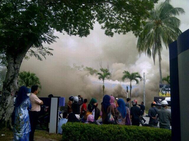Gambar makmal UITM Shah Alam terbakar pada 15 Julai 2013. Pada petang tadi, gempar dengan isu kebakaran yang berlaku di makmal kimia yang terletak di hadapan kolej Perindu. Menurut saksi, kebakaran dipercayai berlaku pada pukul 4 petang tadi dan sehingga pukul 6.30 kebakaran telah berjaya dipadamkan oleh pihak bomba. Punca kebakaran bangunan makmal kimia tersebut masih lagi dalam siasatan. Tiada kemalangan jiwa dilaporkan akibat insiden tersebut.