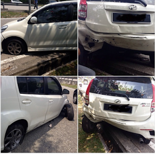 We were on our way to Bandar Tasik Selatan. Bertembung dengan kereta belakang yang nak ke kanan waktu kita orang nak masuk ke simpang kiri. Kereta dua-dua dalam keadaan yang sangat laju.