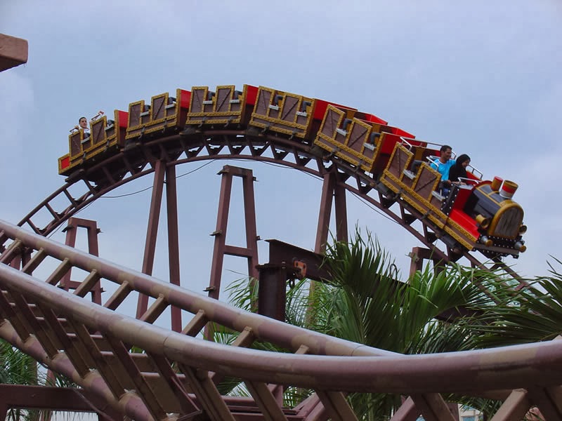 1. Benda pertama yang kami naik, Roller coaster !! Oh mai !! Gila macam nak tercabut jantung! Rasa macam nak jatuh . Allah.. Ingat Allah ja masa tu. Pening ! Kami main 2x benda ni, kali kedua cabarannya, sapa menjerit dia kalah ! Hahaha. ok I win.