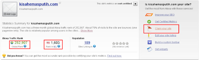 Cara kita nak tahu ranking blog kita yang ke berapa di dalam dunia dan di Malaysia.
