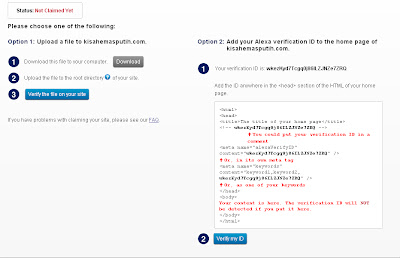 6. Then ada dua option cara nak letak Alexa.com ke dalam blog. Upload a file to your blog and the second option is copy the code ID to HTML.