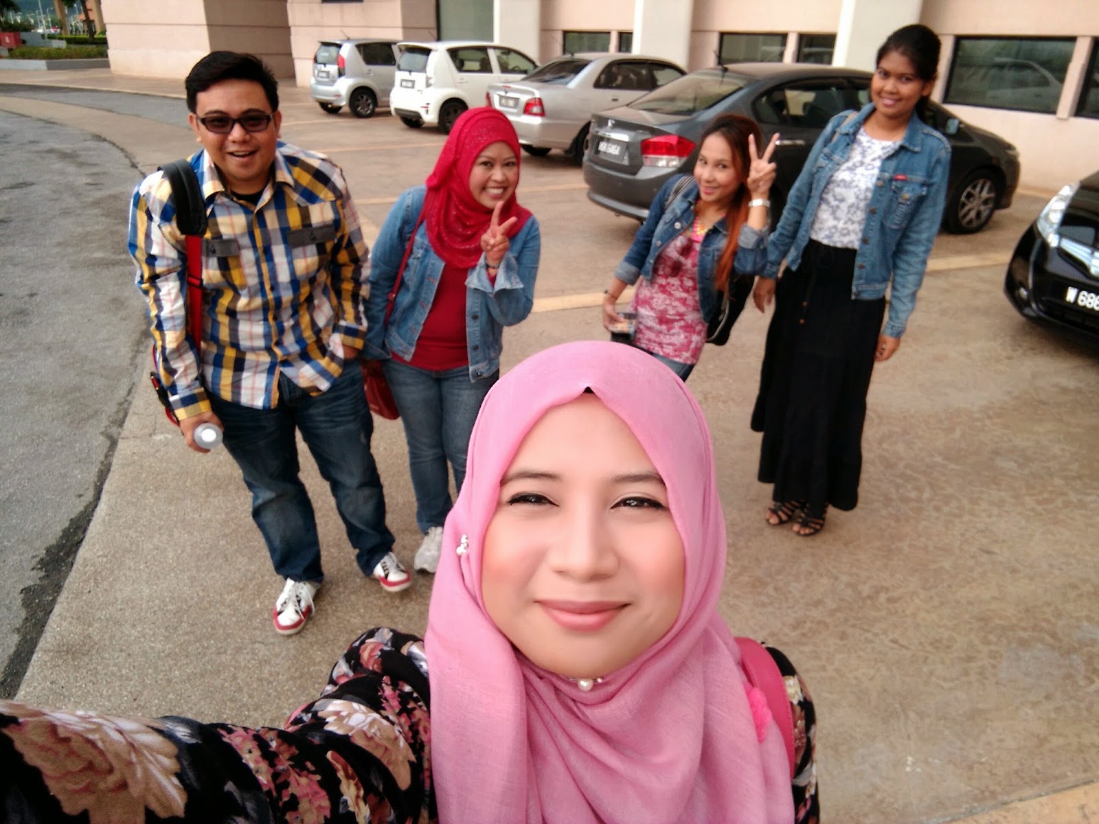 Kat atas ni we ols satu group. Hihi. Lawanya baju kami. Tema kami hari ni ialah muslimah moden. Haha :D