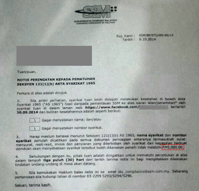 Rupanya notis ni dari tahun 2013 lagi tapi peniaga online buat derk je. So nak tak nak kena bayar juga lah kan. Kalau gagal boleh dikenakan penalti sehingga RM5000.