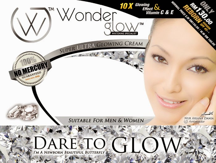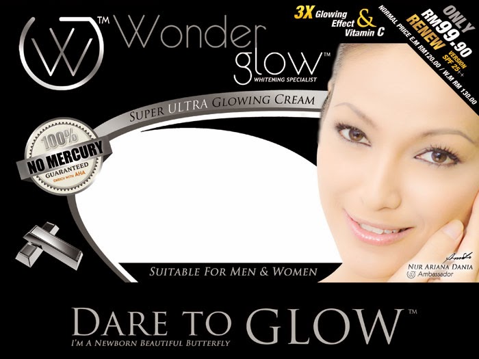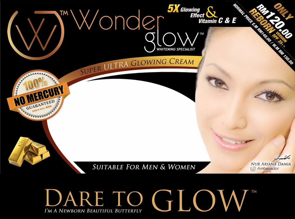 Ok lah nak cerita sikit pasal Wonder Glow Cosmetics ni. Nama pun cosmetics mestilah mengeluarkan produk-produk kecantikan kan? Wonder Glow Cosmetics ni keluarkan produk kecantikan seperti krim pemutih, krim anti penuaan, krim kecantikan dan minuman untuk dalaman.