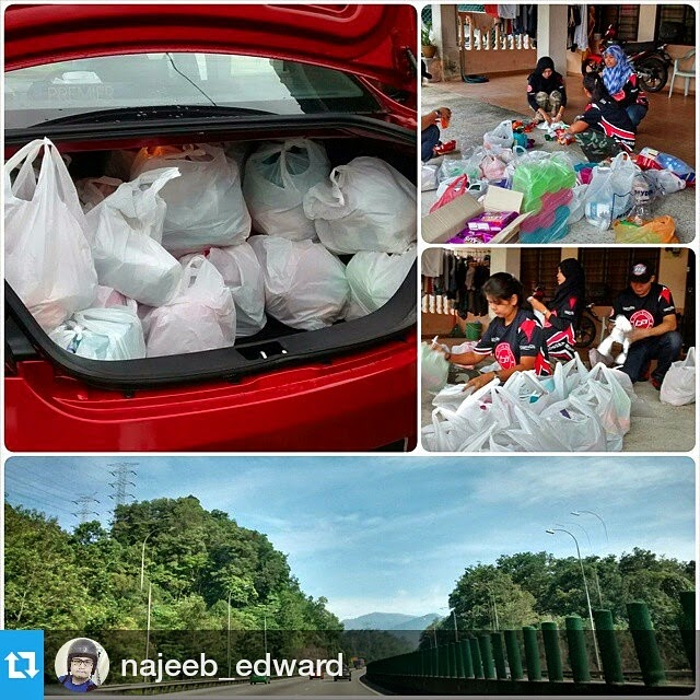 Mungkin, ada yang menjadi persoalan, kenapa nak pergi ke Kuala Lipis Pahang? Kenapa tak pergi Kuala Krai kat Kelantan tu haaa yang teruk sangat banjir? Bukan tak nak pergi, cuma kami utamakan keluarga dalam #kelabbloggerbenashaari dulu dan barulah ke tempat lain. Dalam #kelabbloggerbenashaari ada 3 orang mangsa banjir, kak sue, faizal fredley, dan kak fiza. Tapi yang paling teruk , keluarga kak Fiza lah kat Kelantan. Rumah teralih dari tempat asal. hurm..