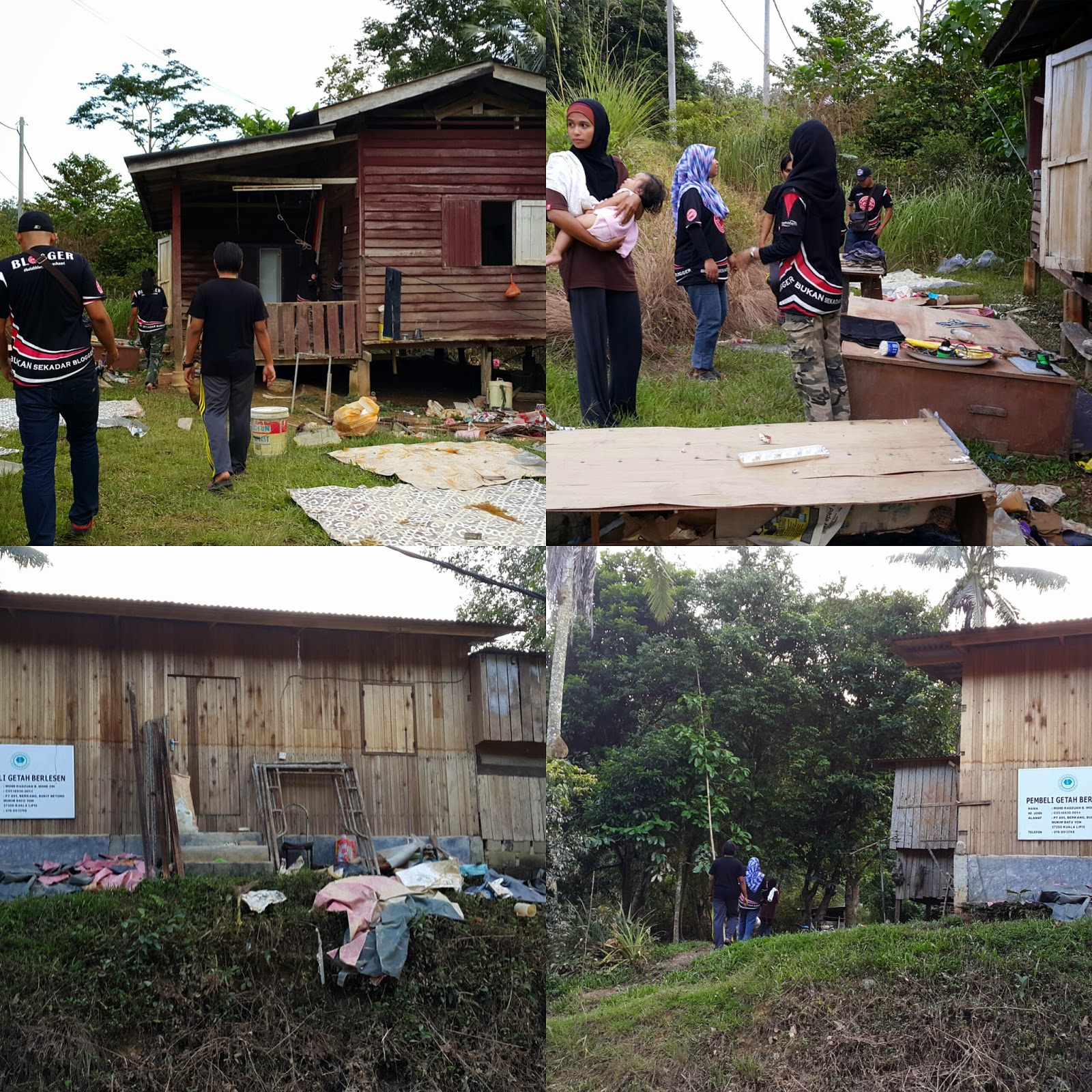 Separuh sumbangan kami beri kepada penduduk kampung Kg. Aur Gading. Lebih kurang 10 buah rumah totally lost. Rumah tepi sungai roboh dan hanyut. Air naik sampai bumbung. Lebih kurang 15meter. Ternakan seperti ayam dan kambing biri-biri lebih 20 ekor mati dan ada yang tak dapat bantuan makanan sebab mungkin tak tahu ada kawasan perumahan dekat situ sebab jauh pendalaman.