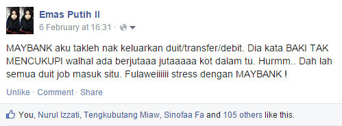 ok orang Maybank kata, kalau betul duit RM100 tu duit uzu.. uzu kena buktikan dan report polis. Tapi.. bila uzu tanya, bila tarikh duit tu masuk? Dia cakap.. tahun lalu.. awal MAC 2014 .. eheleeee kes tahun lalu baru nak detect sekarang ke? Kenapa tak detect awal2.?? Kenapa mesti detect FEB 2015 ? Macam mana uzu nak tau sapa yang bank in kan waktu tu? dah lah duit masuk masuk masuk kan.. ok kalau bukan duit uzu.. uzu kena bagitau pihak Maybank yang duit tu bukan duit uzu dan Maybank akan tolak duit tu dalam acc..