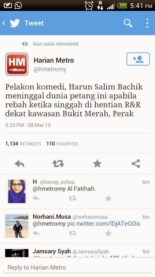 Al-Fatihah Buat Pelakon Harum Salim Bachik | As.Salam. Kita baru dikejutkan dengan kehilangan seorang lagi seniman tanah air, Harum Salim Bachik yang telah menghembuskan nafas terakhir beberapa minit lalu..