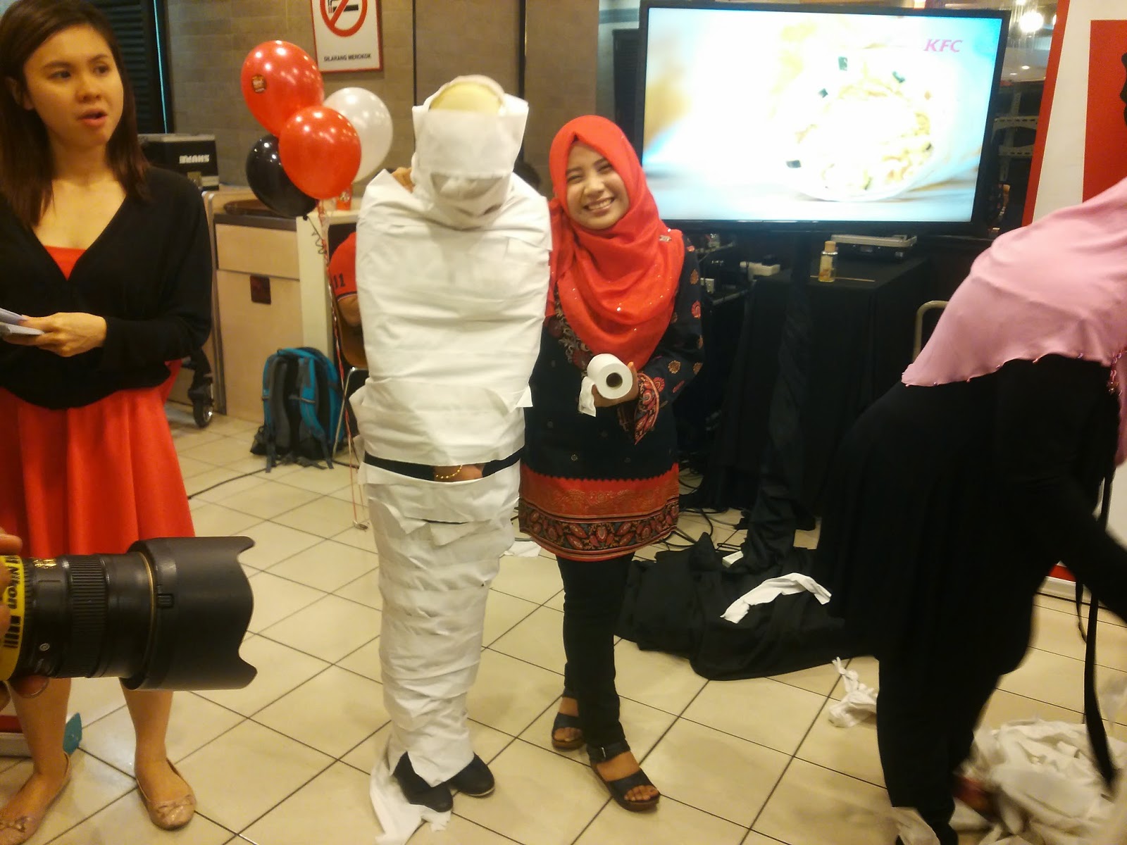 Nampak sedap dan memang ternyata sedap pun rasa Zinger Rice Wrap ni..! Makan panas-panas lagilah sedap.. Ni sesuai untuk uzu atau sesiapa yang busy dan ada waktu yang terhad je untuk lunch, beli je Zinger Rice Wrap, ngappppppppppp je siap.. Dah la sedap, senang nak makan pulak tu.. Nasi kot dalam dia.. Sure kenyang..! Berbaloi sangat dengan harga yang murah, RM4.90 je..Btw, antara aktiviti yang menarik ialah, Wrap blogger jadi macam mumiaa sampai tak nampak ape, pass the parcel, most creative caption in Ig dan macam-macam lagi...