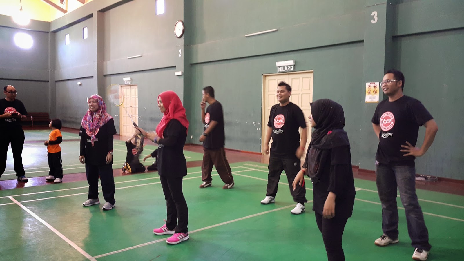 Aktiviti kedua, Badminton.. Yang ni rule pelik sikit, 6 lawan 6 . tapi setiap 1 team ada 1 raket je. So peranan kita kena berbincang dan pass badminton tu. tak leh gerak ok ! Susah sikit tapi have fun.. :)