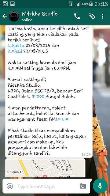 Tahniah ! Anda Terpilih Untuk Sesi Casting Pencarian Model / Talent ! | Salam. Alhamdulillah.. Kelmarin waktu penat kerja kat Tunnel (bawah tanah) di Jeli Kelantan, uzu ada dapat wasap dari sesorang.. Jeng.. jeng.. jeng.. Lama tau tunggu berita ni...