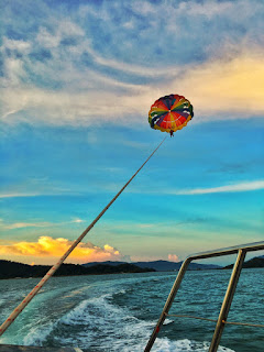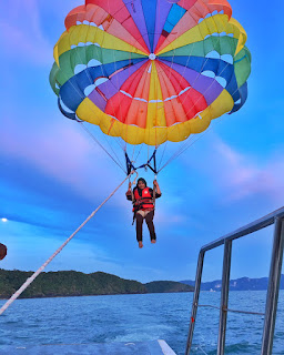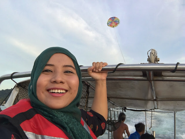 Masa uzu habiskan masa seminggu kat Langkawi, uzu akhirnya dapat merasa parasailing ni. Sebenarnya uzu tak berani nak naik, sebab memang menyeramkan, tapi demi nak gambar menarik kat instagram tu @emasputih90, *promotejap* , uzu pun gagahkan diri.