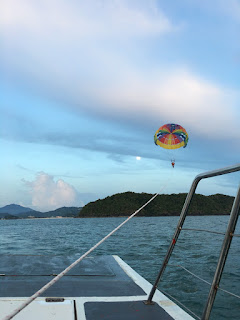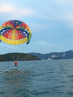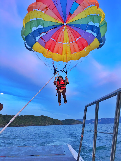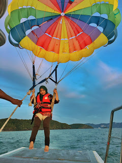 Yeahhh dahh alhamdulillah dapat juga merasa Pasailing ni. Selalu tengok je kat tepi pantai tu. Rasa tak berkesempatan nak naik sebab harga parasailing agak mahal selalunya, ratus2 . Kat sabah nak2 RM200. Kat Langkawi je dapat RM50. So memang rezeki uzu lah.