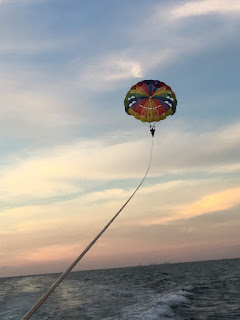 Btw, RM50 untuk 15 minit je tau. Life jacket disediakan. Ohh ya ! Sebagai info penting, jangan ambik Parasailing yang turun kat pantai tau. Ambik yang naik dan turun dari bot . Sebab ada kes parasailing turun kat pantai, orang tu terlalu berat dan susah nak tangkap dari bawah. On the spot orang putih tu matikat situ. So ape yang lebih selamat ialah kita naik dari bot dan turun pun kat bot. Jangan risau, tak akan jatuh ke laut. Bot akan tarik sampai selamat.