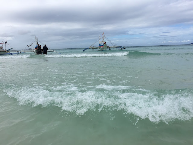 Waktu nak snorkeling ni, nak hujan kat sana so kitepun tak lama snorkeling sebab laut mulai bergelora. Ada bot yang terbalik waktu tu. Hmm nasib baik semua penumpang takde dalam tu. Penumpang tengah snorkeling tapi terfikir juga. Macam mana barang2 diorang. Handphone? Wahhh habislah kalau tak guna dry bag. Kat sini pentingnya dry bag. Laut kat boracay ni bukan macam laut kat Malaysia atau krabi and so on. Laut dia bergelora dan ombak kuat. Waktu uzu snorkeling pun, even pakai life jacket tapi kena berpaut pada bot. Kalau tak memang hanyut. Tapi takde lah deras sangat sampai tak boleh nak swim. Cuma berombak2 je.