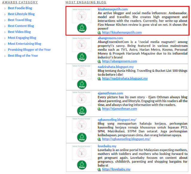- Vote uzu kat MOST ENGAGING BLOG. Undi kisahemasputih.com