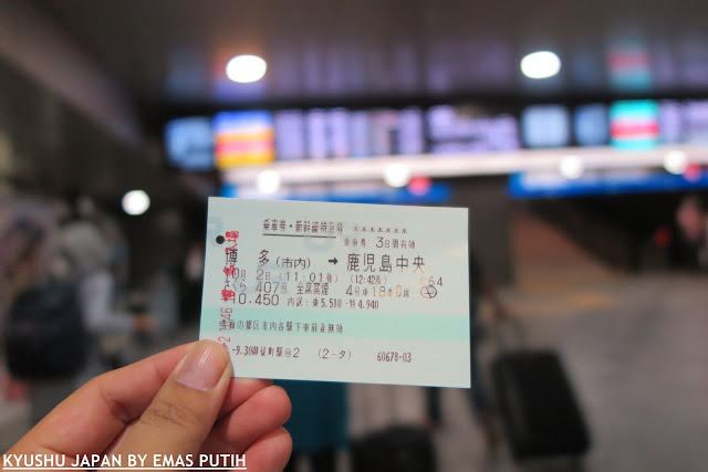 Selepas beli makanan untuk lunch, Mr. Ryo membeli tiket bullet train dari Hakata Station ke Kagoshima yang berharga RM430 sehala. Heheheh mahal tak? Kami pun terkejut diknon.. So perjalan yang mengambil masa 3 jam by road hanya menjadi sejam lebih untuk ke Kagoshima.