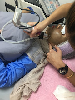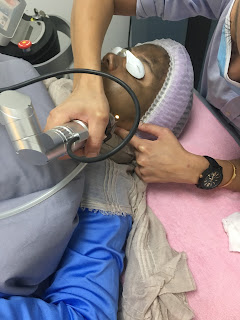 Gambar kat bawah ni gambar doktor tengah buat laser carbon peel.. Bunyi dia macam poop popp ada percikan api di muka. Ce korang tengok video kat bawah ni..