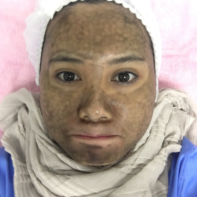 Mula-mula yang pakai mekap macam uzu tu, kena remove mekap.. Nasib baiklah diorang tolong buangkan mekap. Best wooo kena gentel-gentel muka ni.. Rasa macam nak tido.. Hihi.. Ok ni muka dah siap basuh muka, then dia letak carbon peel.