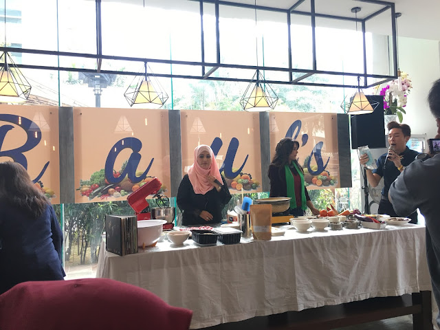 Chef Siti Mastura akan melancarkan pre mixed cakes dan Puan Sri Nisa Bakri pulak akan melancarkan produk ready to cook. Antara produk Puan Sri ialah paste ..Demostrasi tadi Puan Sri menggunakan produknya iaitu paste segera yang dimasak dengan ikan mahupun seafood. Uzu dah rasa masakan asak pedas puan sri tadi, memang sedap sangat-sangat! Puan Sri memang suka masakak, tapi puan sri bukanlah chef. That's why lah Puan Sri keluarkan buku resepinya tersendirirrrrr ..