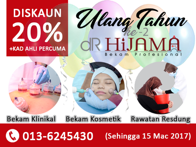 Btw kalau korang nak try 3 jenis servis yang ada di DR HAJIMA , boleh lah contact info kat bawaah dan boleh skodeng2 info yang lebih lanjt mengenai DR HAJIMA kat bawah ni ye.. Kalau nak p situ, alaamat pun ada kat bawah. Hihihi.. Yaang penting ada diskaun 20% sempenaa 2nd anniversary DR HAJIMA. Waktu ni lah kita nak berbekam dengan harga mampu milik. Ok laha tu je. Salam :)