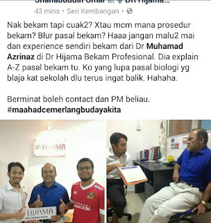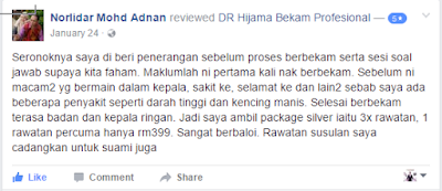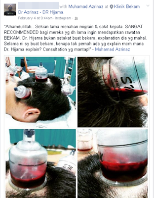 Ok lepas baca testimoni DR HAJIMA ni, rasa macam maalam ni juga uzu nak berbekam kat situ. Naisb baik lah dah tengaah malam.. Kalau uzu ada kereta esok pagi jugak pergi. Haha.. Sebab dah lama tak berbekam tu.. Teringin gila ha.. Berbekam klinikal dah pernah rasa. Bekam kosmetik tu yanag uzu nak try sebab taak pernah tahu ada bekam kosmetik.. Mungkin boleh menyempuhkan kulit muka uzu ni ke.. Kulit muka dah tak licin seperti dulu. Muka dah nampak kusam. Memanag perlu nak try bekam kosmetik..