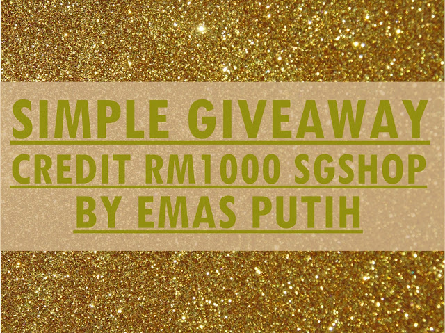Simple Giveaway RM1000 Credit SG Shop Malaysia by Emas Putih di sponser oleh SG Shop Malaysia . Terima kasih kepada yang sudi join GA ini. Diharap murah rezeki korang .. Kalau tak dapat menang GA uzu yang cash tu, join ni pulak.. InsyaAllah mudah-mudahan ada rezeki kat sini pulak. Ok lah tu je salam.