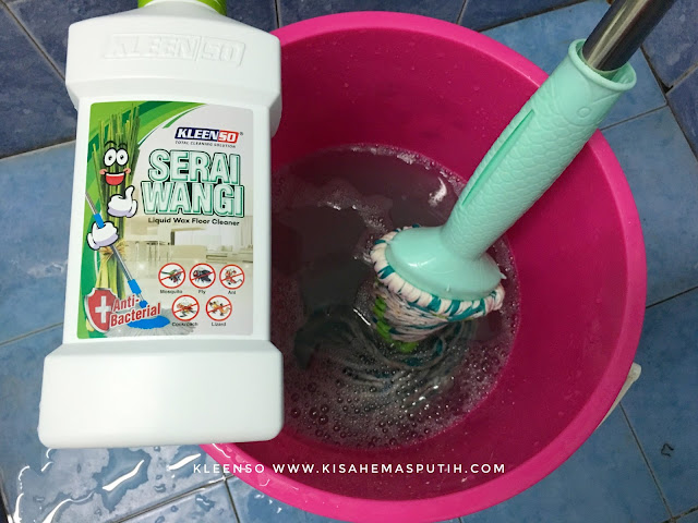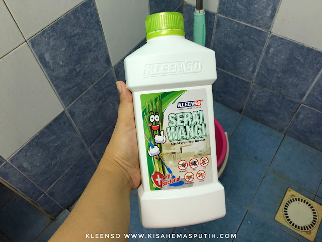 Serai Wangi Liquid Wax Floor Cleanser ni bauan dia serai, tu dah terang-terang dia kata Serai Wangi, memang Serai lah tu. KleenSo gunakan serai di dalam pembuatan Serai Wani Liquid Wax Floor Cleanser kerana Serai ni boleh menghalau nyamuk, serangga, lipas, lalat dan macam-macam lagi. Siap ada Anti Backterial lagi.. Sesuai mak pak pakai tuk mop lantai.. Lagi-lagi jenis budak yang selalu main kat lantai kan? Haa elok sangat guna pencuci ni tuk mop lantai :)