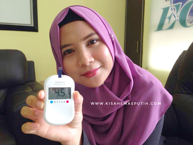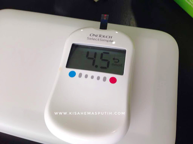 Dah cucuk jari tadi, Doktor ambik darah sebelum minum air. Bacaaan 5.2 .