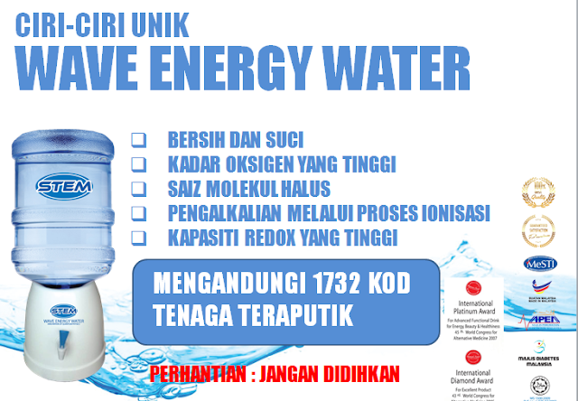 Air minuman STEM adalah dari sumber tenaa baru dan teknologi baru yang sangat berkesan dan cepat .. Air mengunakan asas wave dan digunakan terhadapat makanan dan minuman. So terhasillah air minuman STEM. Air minuman STEM bersifat halus dan ditambah dengan code anti-decease so bila kita minuam air ni akan menyerap masuk ke dalam badan kita. Dengan automatik, segala jenis penyakit yang ada dia baiki/ubat..So bila air minuman ni halus, senang nak masuk dalam sel sel badan kita..