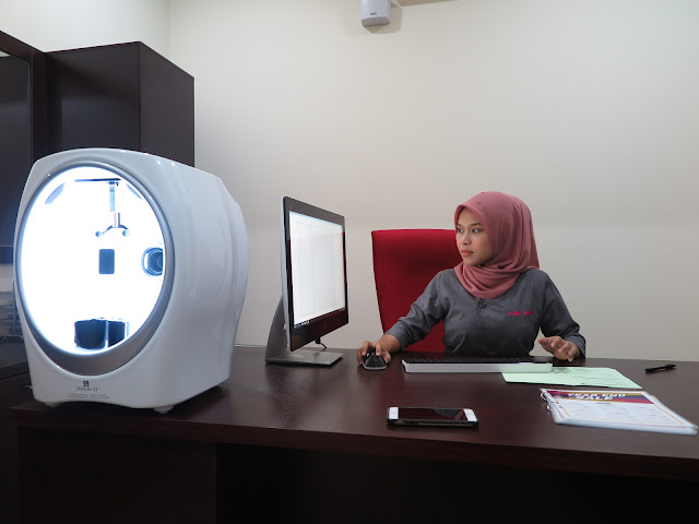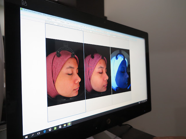 Memula step ni, sila tanggalkan makeup anda ! Pastu kena scan muka kita.. Nampak lah muka huduh tu haaaa. hahaha nak cantik ke tak? Kalau nak cantik, kabaikan muka huduh kat PC tu :p Redha je lah apa doktor tu nampak... Adoiiii baru nak control ayuuuu depan Doktor hensem tu, habihhhlah semua muka berminyak jerawat muka semua nampak. Belum lagi bintik hitam putih tu hahaha :D I is redha..