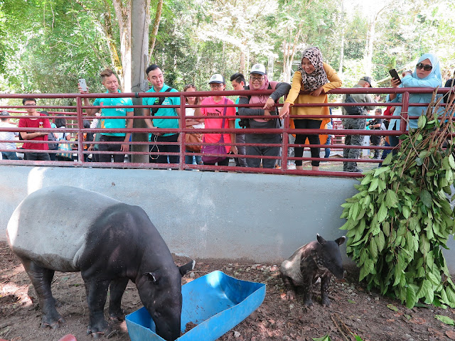 Selepas majlis penyerahan cek sumbangan, kami semua dijemput untuk membuat lawatan ke Taman Tapir . Apa yang kami dimaklumkan, tapir tapir yang ada di situ ialah tapir yang paling besar di nSelangor. Haaa patut lah uzu tengok besar dia lain macam.. Dah macam anak gajah.. First time tengok tapir secara dekat. Best rupanya kan melawat haiwan yang makin pupus ni kan? Hadir satu perasaan sayangnya uzu kepada tapir-tapir ini .. Hehe. comel sesangat !