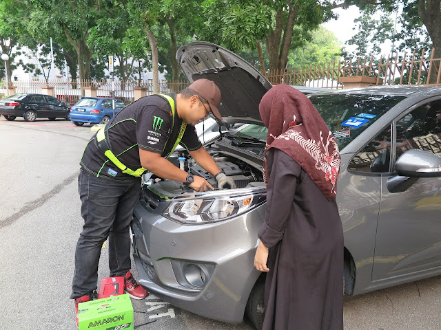 Grgr kereta baru dalam setahun lebih guna, ni kali pertama lah gamaknya bateri buat hal tak hidup langsung. Nasib baik kami kat stesen minyak lagi..Boleh minta tolong orang kat situ jumper kereta.. Kalau tak, memang buntu jugak ni. Huhuhu... Nasib baik ada abang teksi yang sudi bantu kami dua malam tu.. Thank you bang ! Next time kena standby jumper. huhuhu...