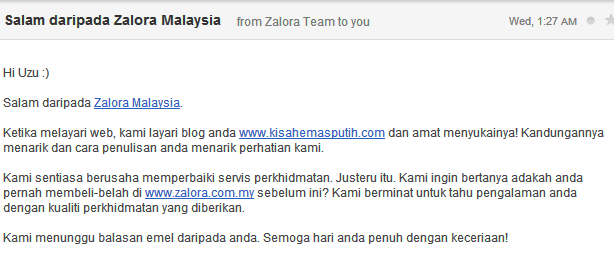 Ingat dia nak sponser post. Rupanya nak tanya feedback servis Zalora Malaysia camne.