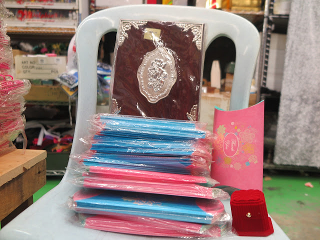 Selain daripada paper bag, dan pillow box, uzu nampak beberapa item yang uzu dah lama cari hihi. Iaitu tempat letak quran dan tempat letak cincin.. Hihi.. Casing quran ni uzu nak cari 2 biji tapi bajet 1 biji je. Harga casing quran murah ni RM120 tau. Kat tempat lain RM150-RM180.. Ape lagi terus grab. Huhuhukk.. Bekas tempat cincin pon uzu beli. Bekas jenis baldu. RM7.50 je hihi..