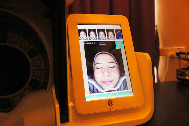 Seperti biasa, mana-mana spa pun akan buat check muka kita dulu. Dia analis keadaan kulit kita sebelum rawatan.. Cuma apa yang uzu impress dengan mesin ni , ia sangat moden, latest design dari Korea. Kat Korea mesin analisi ni sangat-sangat famous dan SoulBeauty juga tidak ketinggalan untuk meng-upgrade segala kemudahan untuk keselesaan pelanggan-pelanggan mereka :)