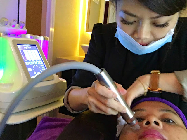 Rawatan muka mengambil masa lebih kurang satu jam.. Mula-mula staff mereka akan tanggalkan mekap kita.. Pastu basuh muka dengan double cleansing. Double cleansing ni penting tauu untuk buat muka bersih daripada kotoran.. Selalunya double cleansing mereka akan guna 2 jenis pencuci muka yang berbeza...Means bersih lah muka kita kan? :)