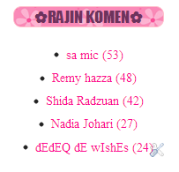 Opsss hampir terlupa pulak nak umum Top Commentor untuk blog uzu ni.