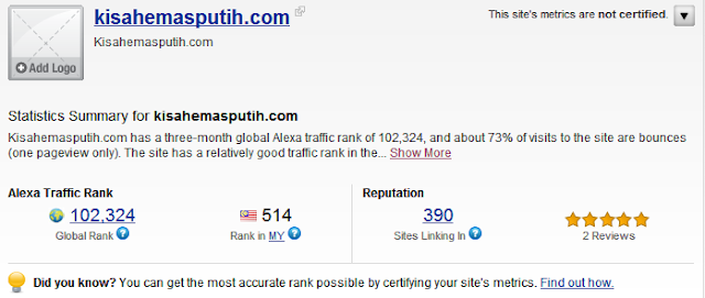 Wordless Wednesday : Ranking Alexa Blog Kisah Emas Putih #3