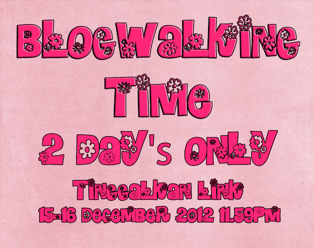 Blogwalking ni selama 2 hari sahaja yer 15 - 16 Disember 2012.