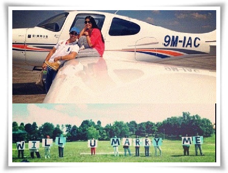 Menurut laman mikro Twitter pasangan ini, Fouziah dilamar dengan cara istimewa serta menaiki helikopter, Sabtu lalu. “Di Lapangan Terbang Subang.